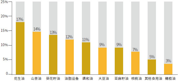 | 食用油 | 花生油、菜籽油、大豆油、玉米油、調和油、棕桐油、葵花籽油等。 |